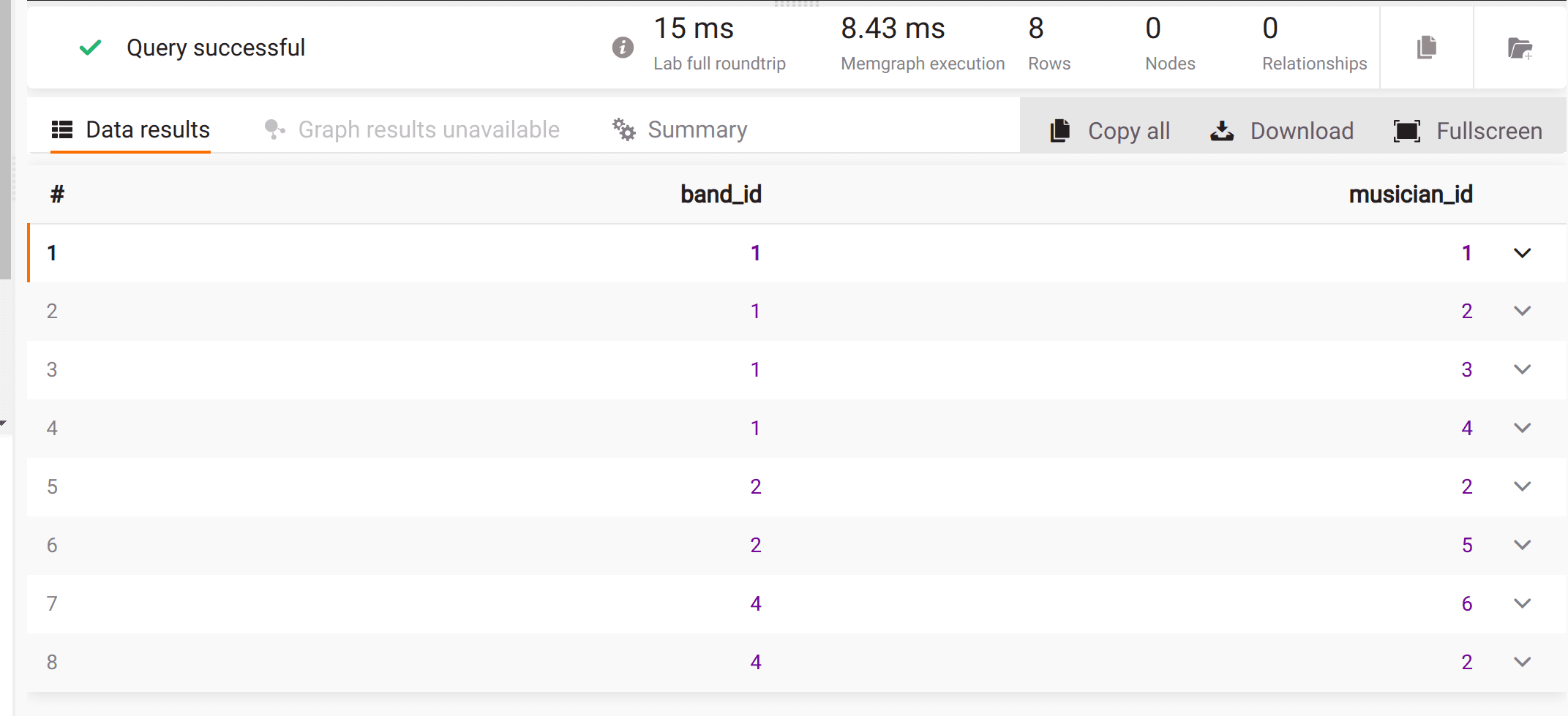 RETURN row.band_id AS band_id, row.musician_id AS musician_id;